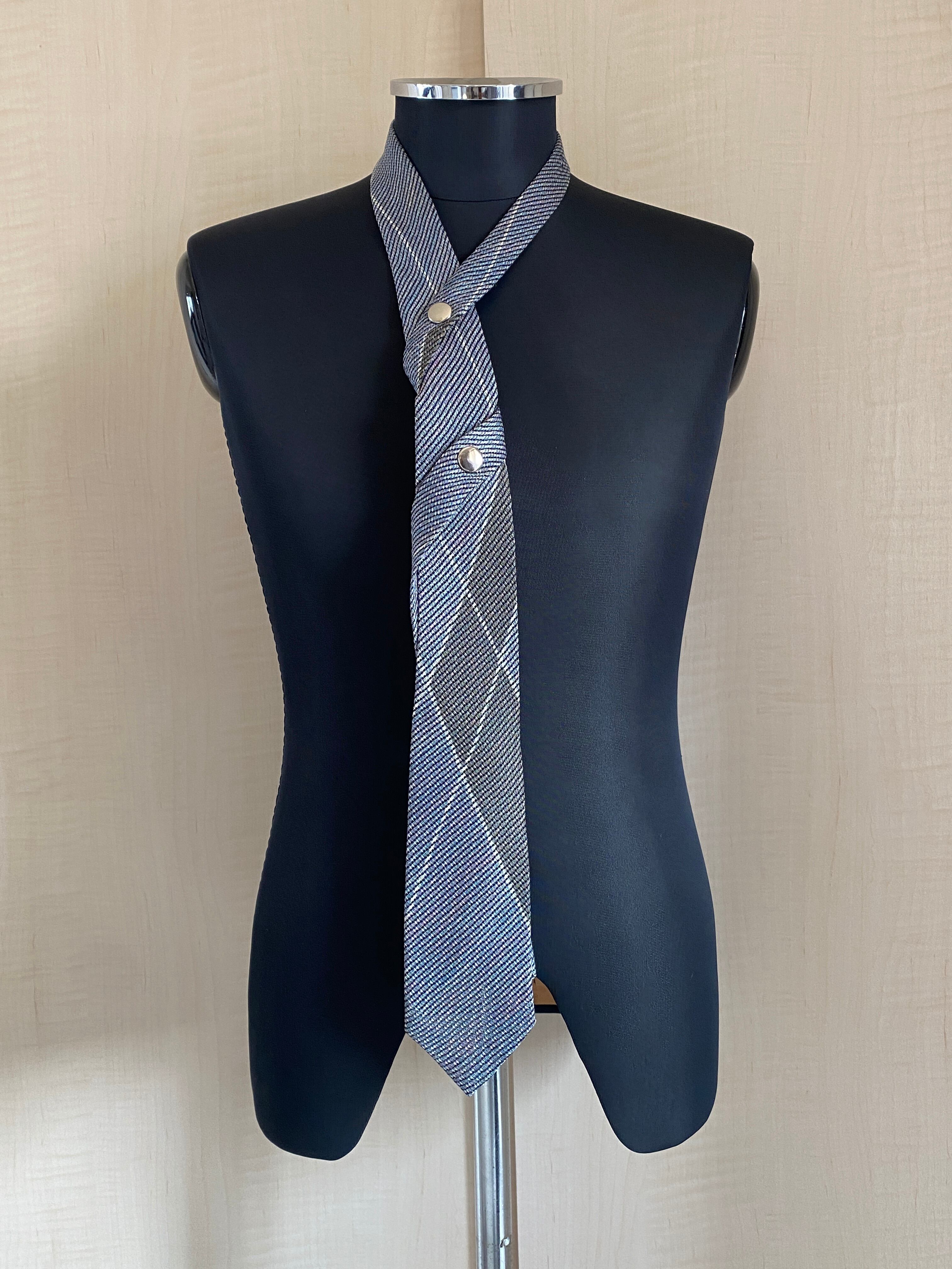 ネクタイにシルバーのドットボタンが付いた事によって