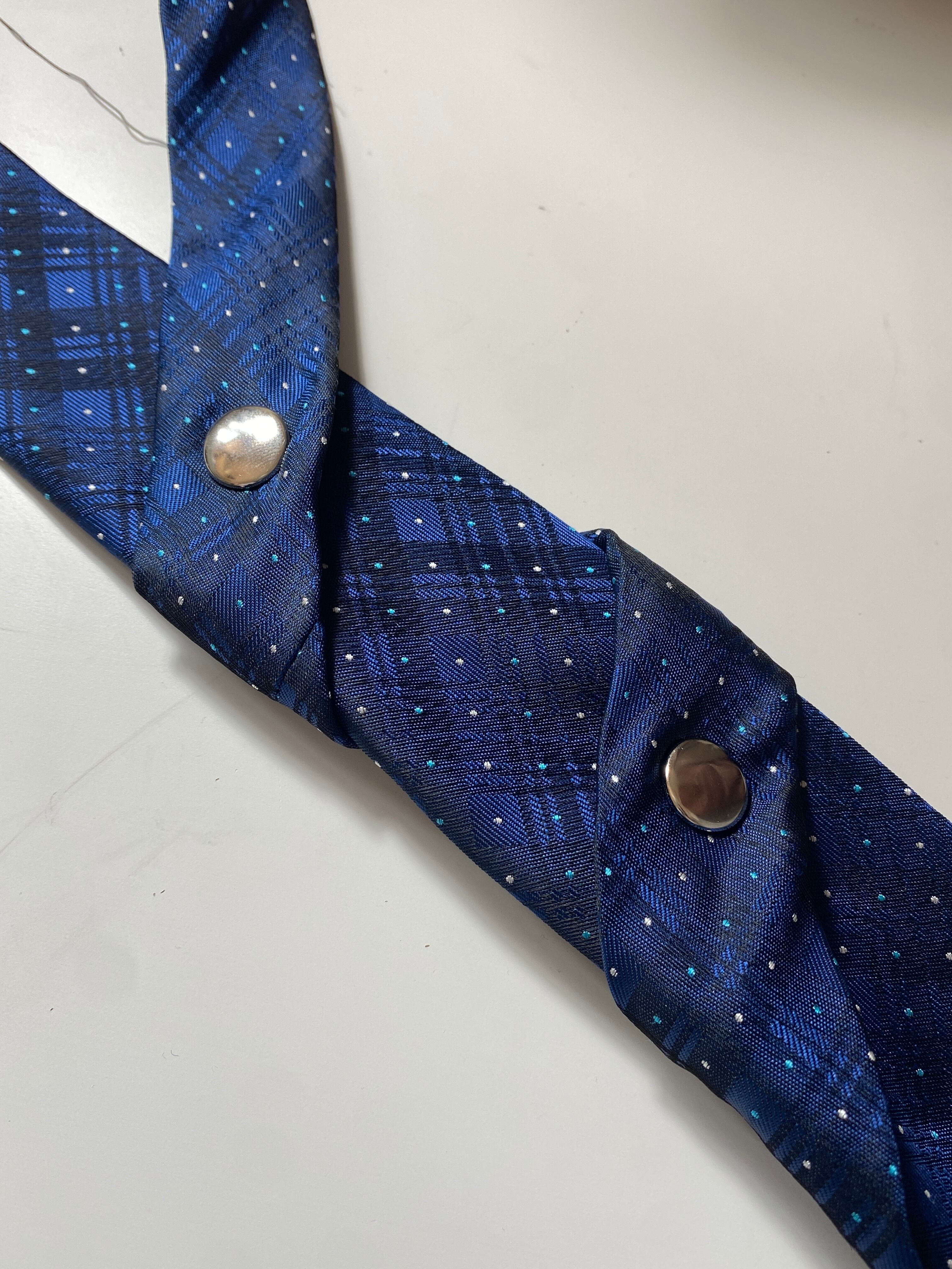 ネクタイにシルバーのドットボタンが付いた事によって