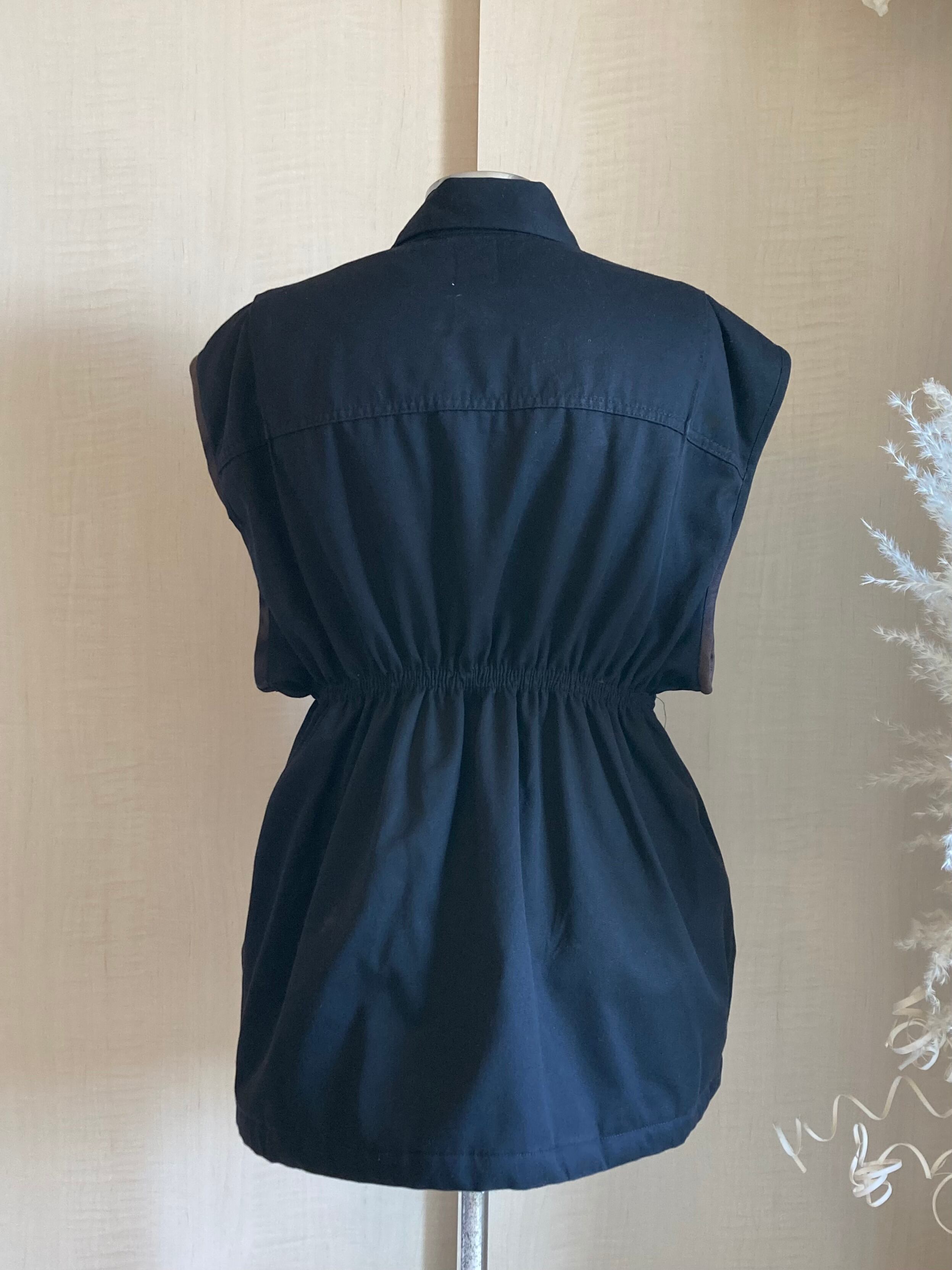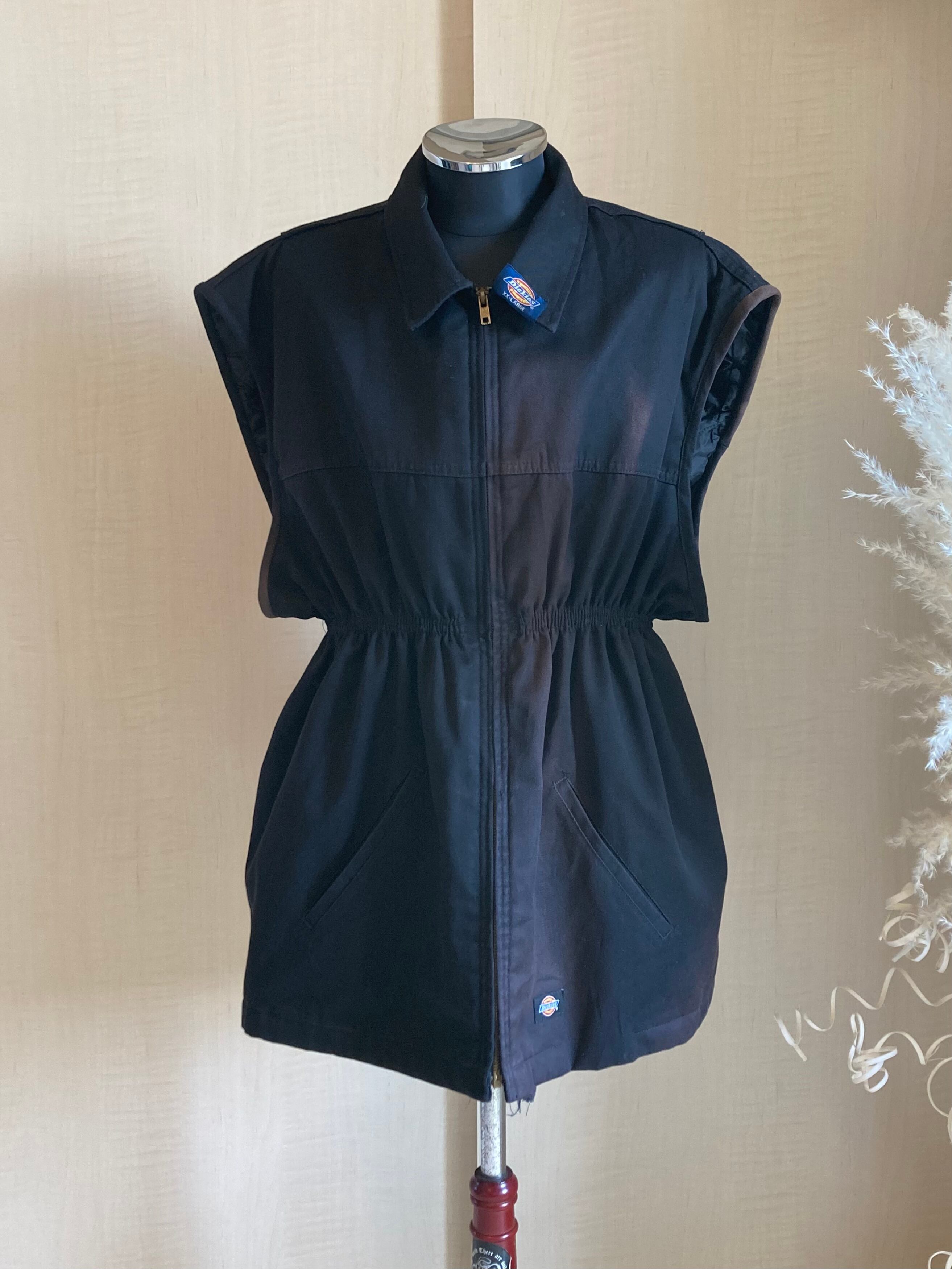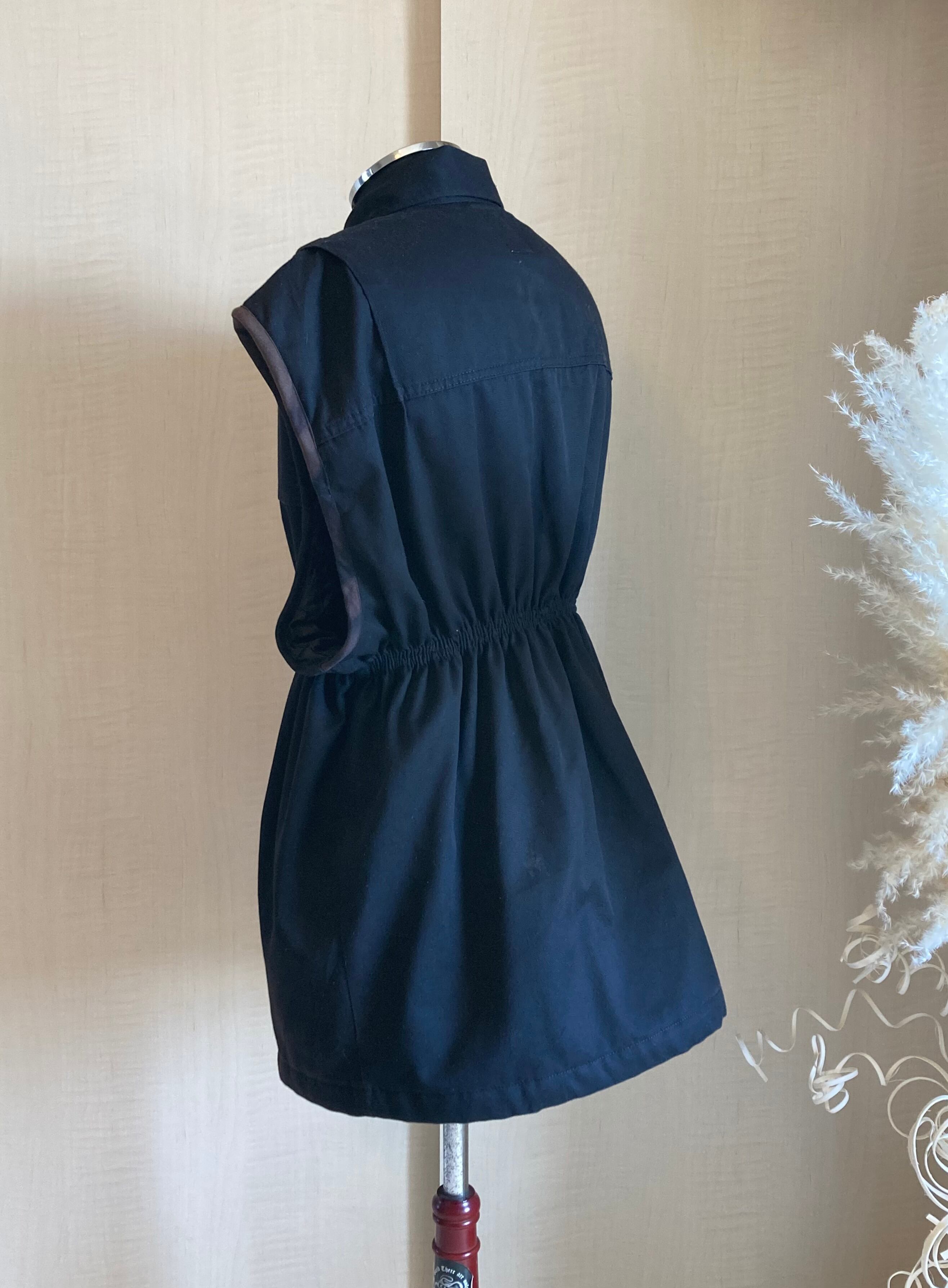 XXLのオーバーサイズブルゾンの袖をカットして共生地を袖口にパイピングを施して、ベストにしました。