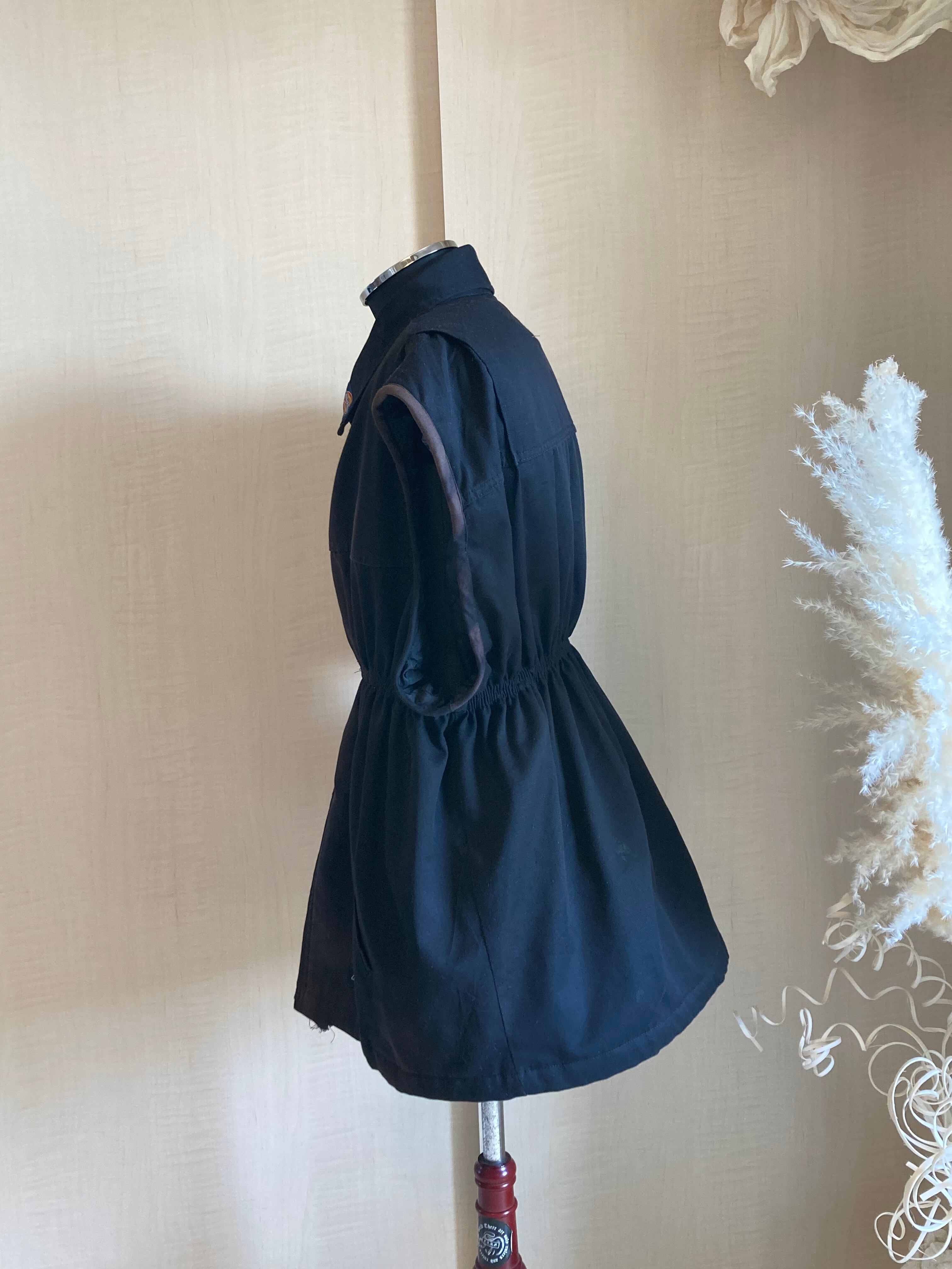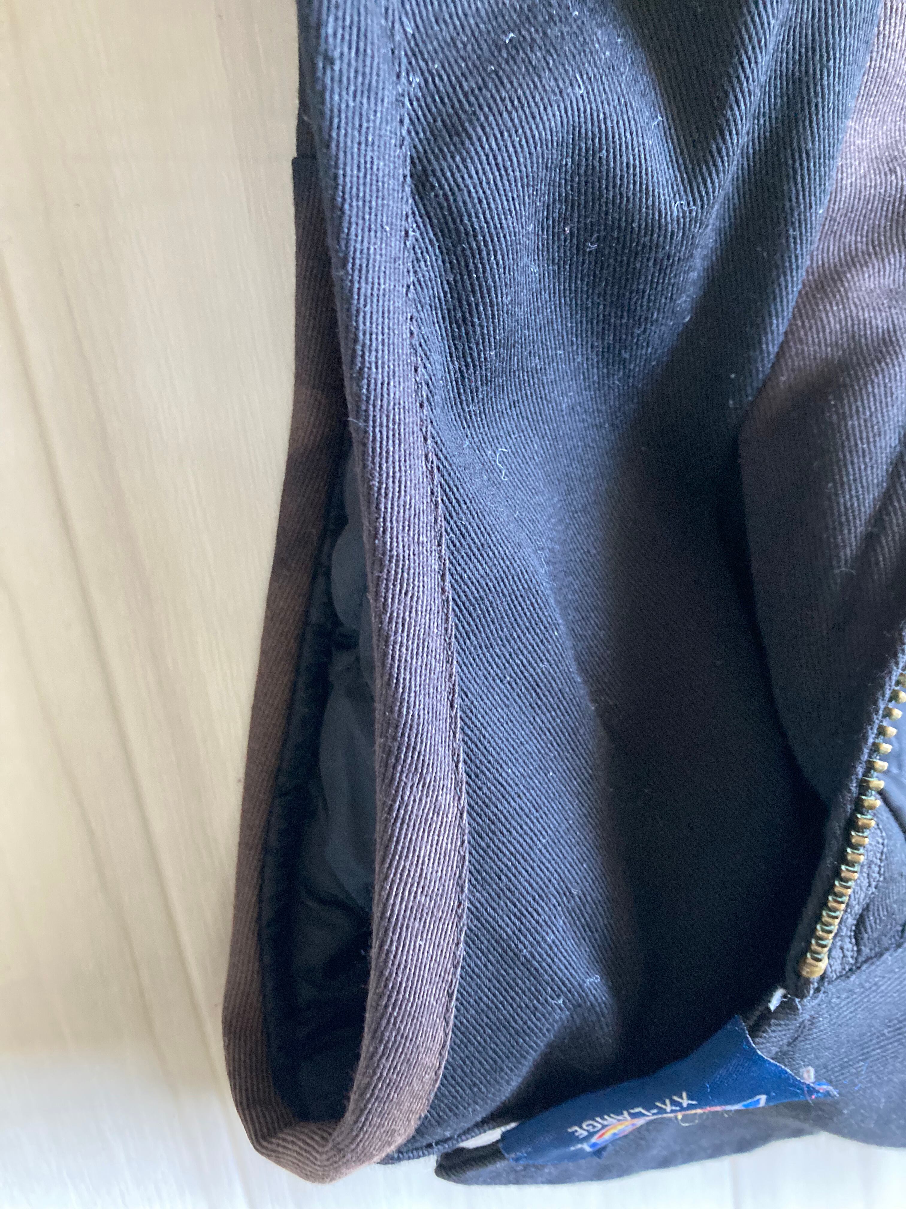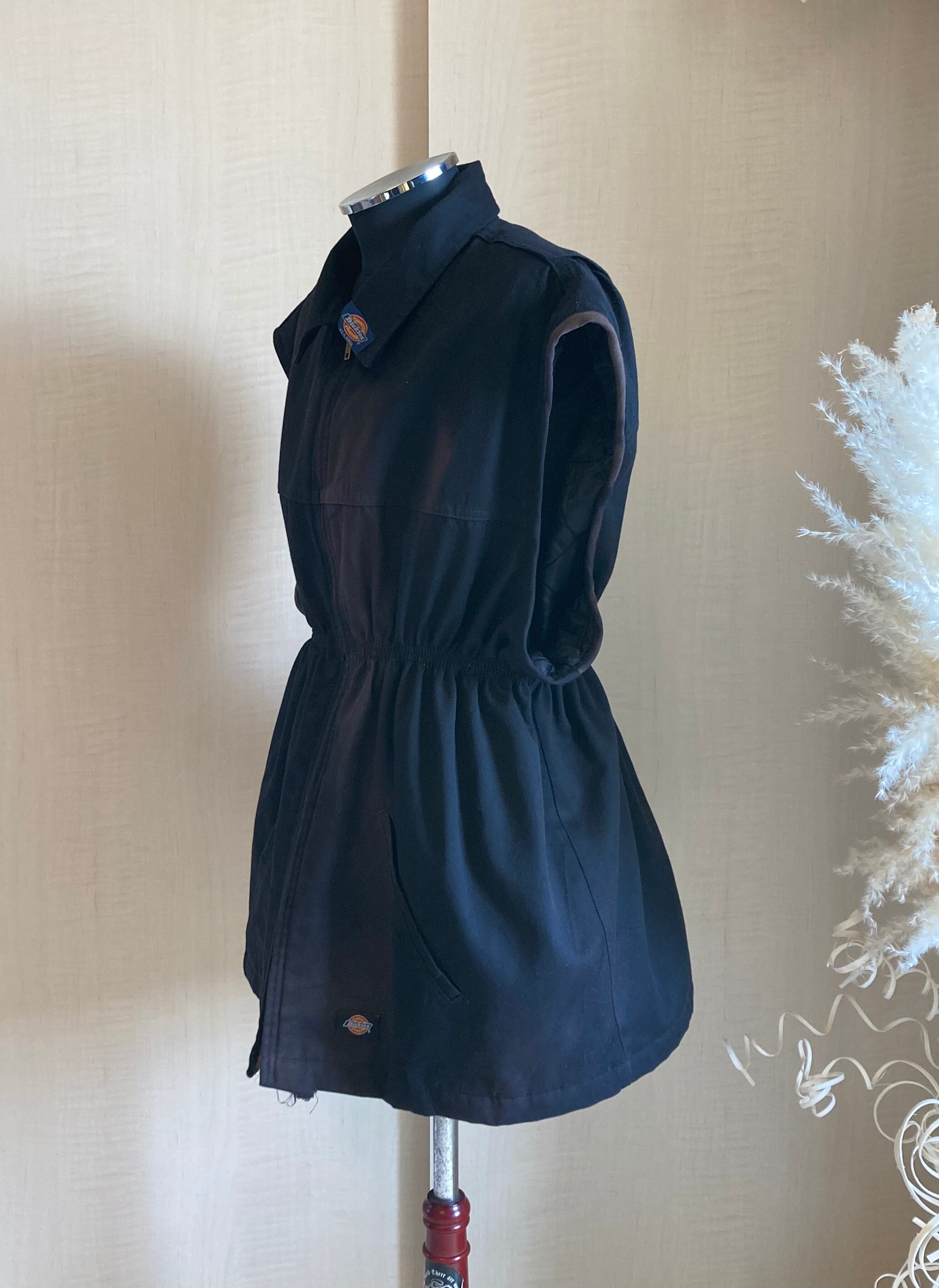 XXLのオーバーサイズブルゾンの袖をカットして共生地を袖口にパイピングを施して、ベストにしました。